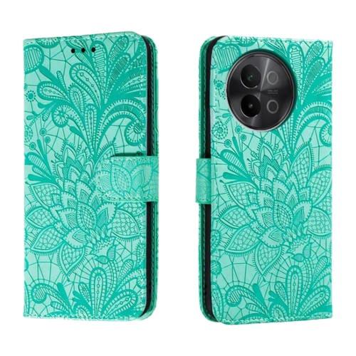 Funda de Cuero con Tapa y Estampado de Flores con Encaje para Vivo S18E (Verde)