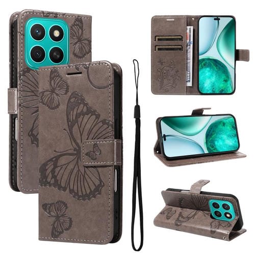 Funda de Cuero con Tapa y Estampado Mariposas 3D para Honor X8C 4G (Gris)