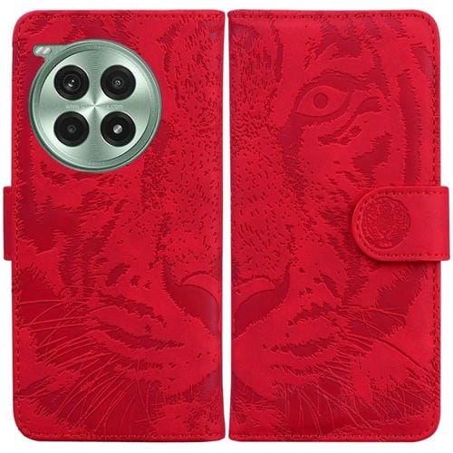 Funda de Cuero con Tapa y Estampado de Tigre para OnePlus Ace 3 Pro (Rojo)