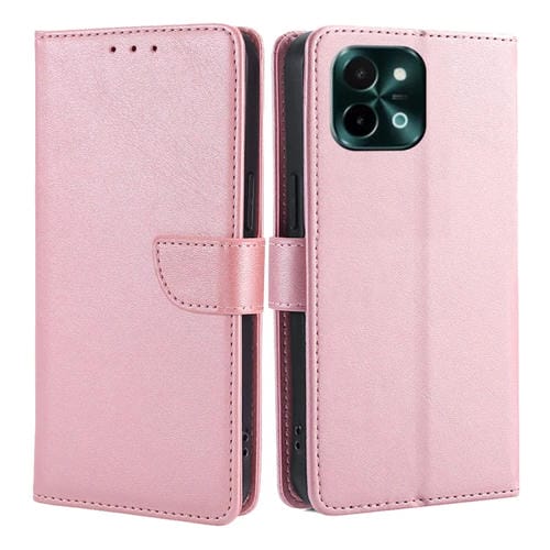 Funda de Cuero con Tapa y Hebilla con Textura de Piel de Becerro para Vivo Y28 4G (Oro Rosa)