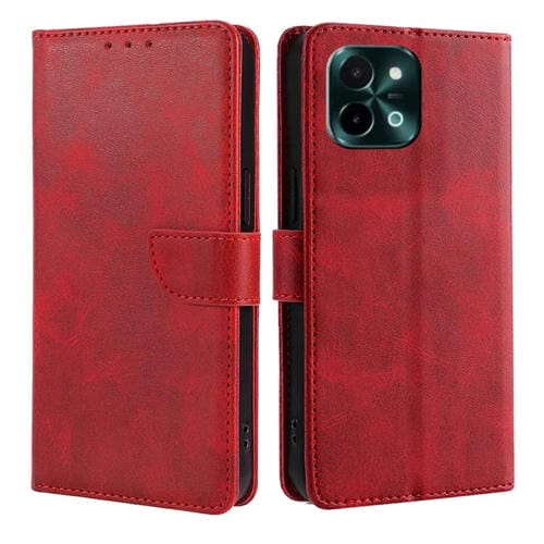 Funda de Cuero con Tapa y Hebilla con Textura de Piel de Becerro para Vivo Y28 4G (Rojo)