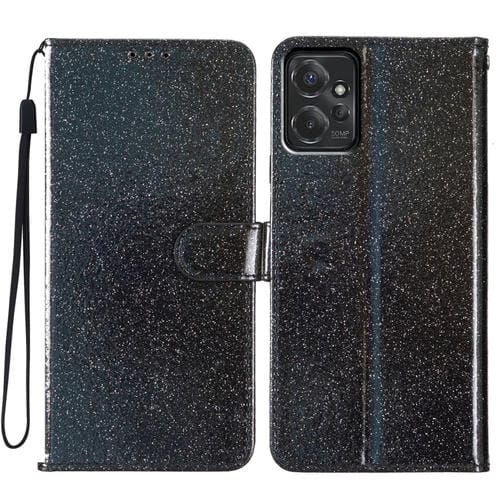 Funda de Cuero con Tapa y Purpurina para Motorola Moto G Power 5G (Negra)