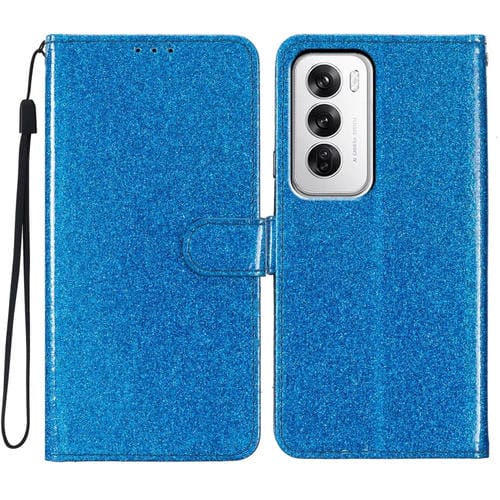 Funda de Cuero con Tapa y Purpurina para Oppo Reno12 Global (Azul)