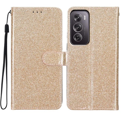 Étui en cuir à rabat en poudre scintillante pour OPPO Reno12 Pro Global (or)
