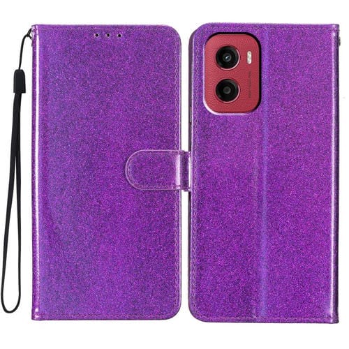 Funda de Cuero con Tapa y Purpurina para Motorola Moto G05 (Morado)