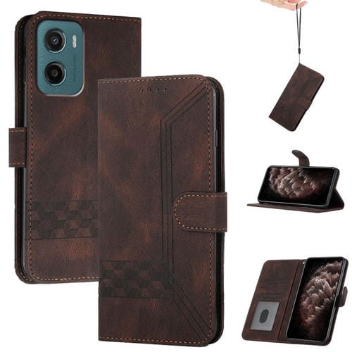 Funda de Cuero con Tapa y Tacto de Piel Cúbica para Motorola Moto G05 (Marrón)