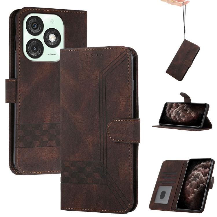 Funda de Cuero con Tapa y Tacto de Piel Cúbica para Teléfono Itel A50 (Marrón)