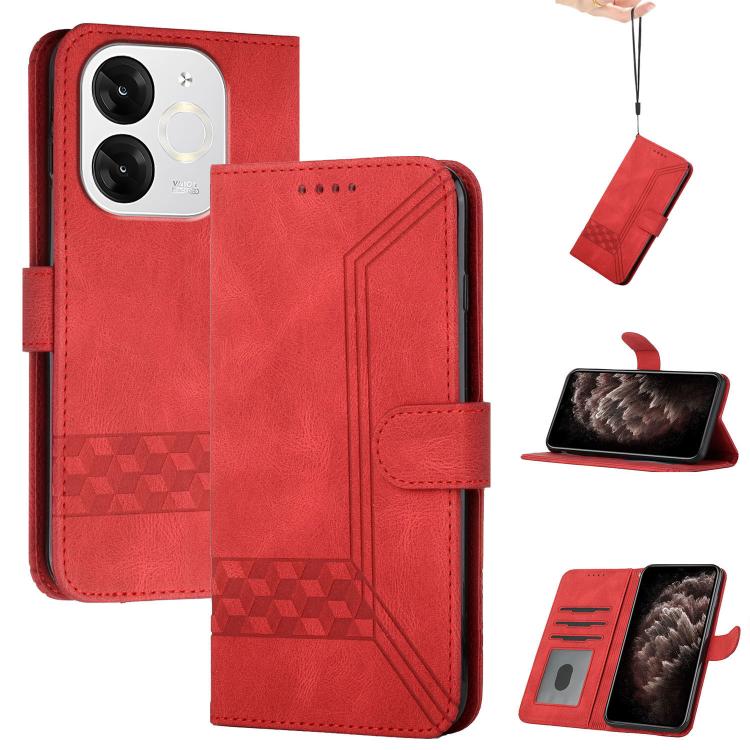 Funda de Cuero con Tapa y Tacto de Piel Cúbica para Teléfono Itel A80 (Roja)