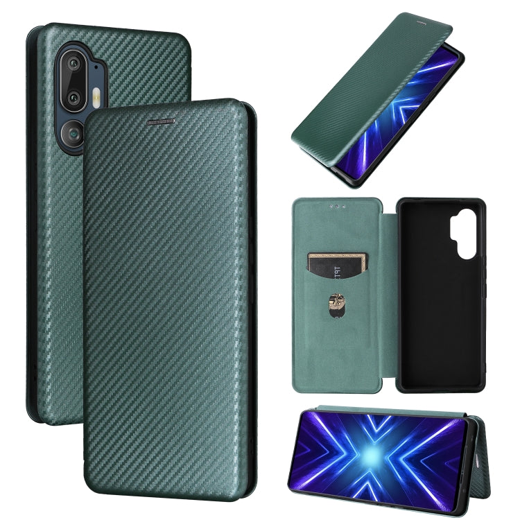 Funda de Cuero con Tapa y Textura de Fibra de Carbono para HTC U24 Pro (Verde)