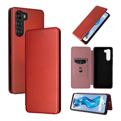 Funda de Cuero con Tapa y Fibra de Carbono para ZTE Nubia S 5G A403Zt (Marrón)