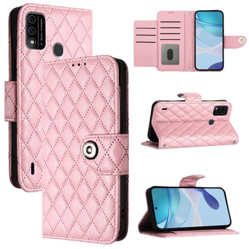 Funda de Cuero con Tapa y Textura Rombal para Teléfono Itel A48 con Cordón (Rosa)