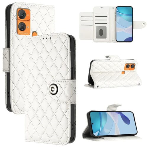 Funda de Cuero con Tapa y Textura Rombal para Oukitel C33 con Cordón (Blanco)