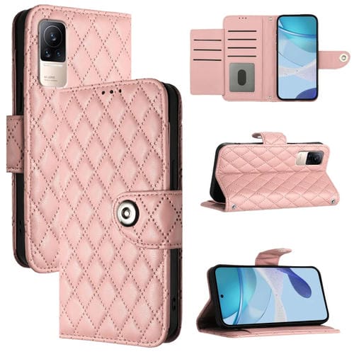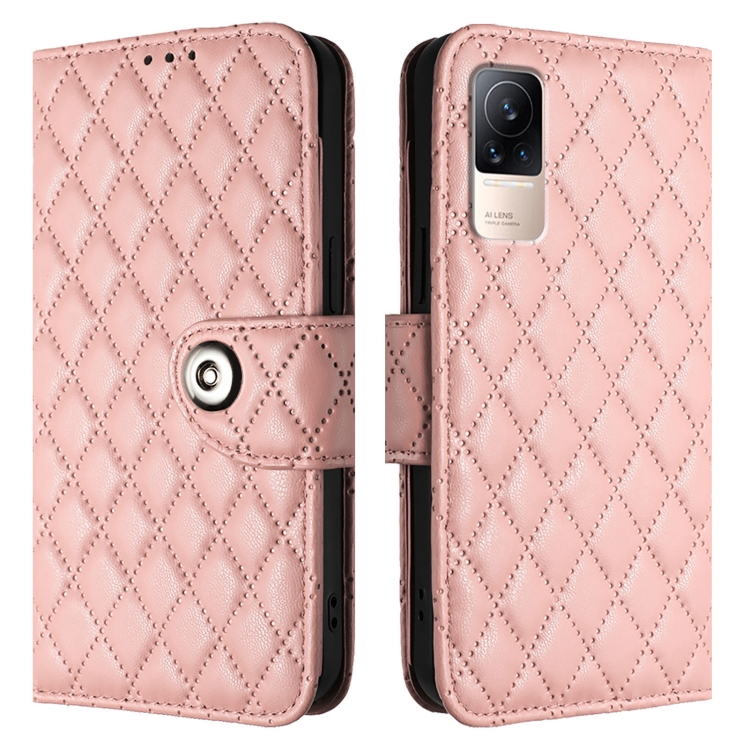 Funda de Cuero con Tapa y Textura Rombal para Xiaomi Civi 1S con Cordón (Rosa Coral)