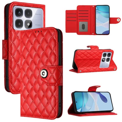 Funda de Cuero con Tapa y Textura Rómbica para Redmi K70 Ultra 5G con Cordón (Rojo)