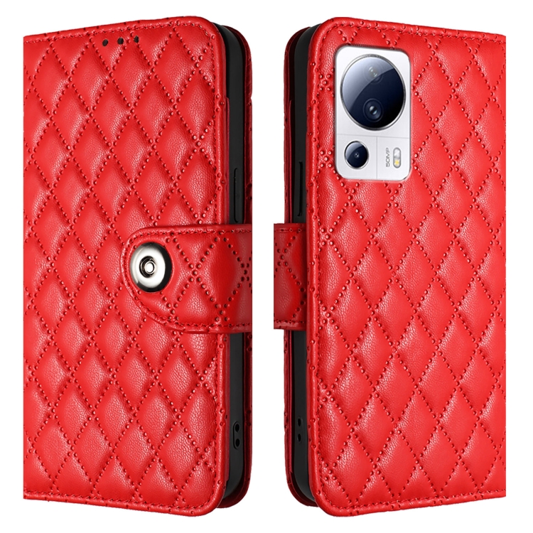 Funda de Cuero con Tapa y Textura Rómbica para Xiaomi 13 Lite/Civi 2 con Cordón (Rojo)