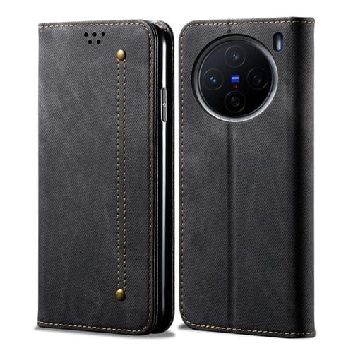 Funda de Cuero con Tapa y Textura Vaquera para Vivo X200 Pro Mini (Negra)