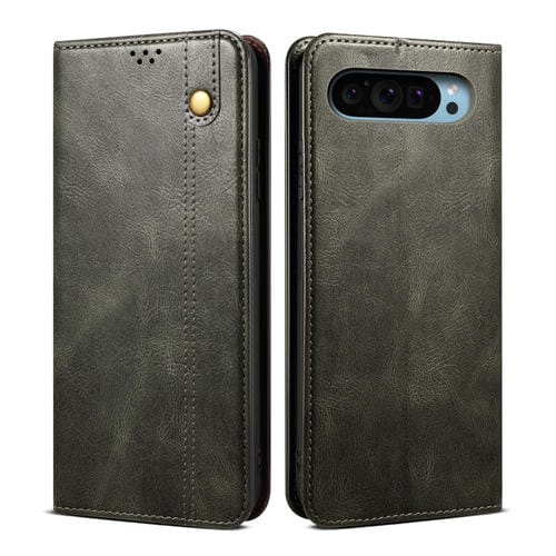 Funda de Cuero Crazy Horse con Cera de Aceite para Google Pixel 9/9 Pro (Verde)