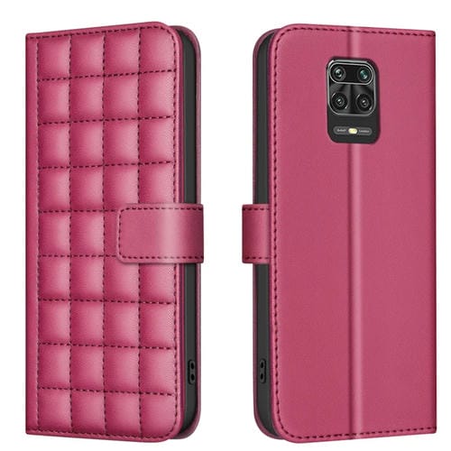 Funda de Cuero con Textura Cuadrada para Redmi Note 9 Pro Max / 9 Pro / 9S (Rojo)