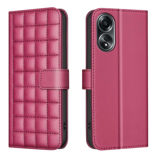 Funda de Cuero con Textura Cuadrada para Teléfono Oppo A58 4G (Rojo)