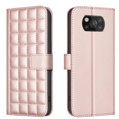 Funda de Cuero con Textura Cuadrada para Teléfono Xiaomi Poco X3/X3 Nfc (Oro Rosa)