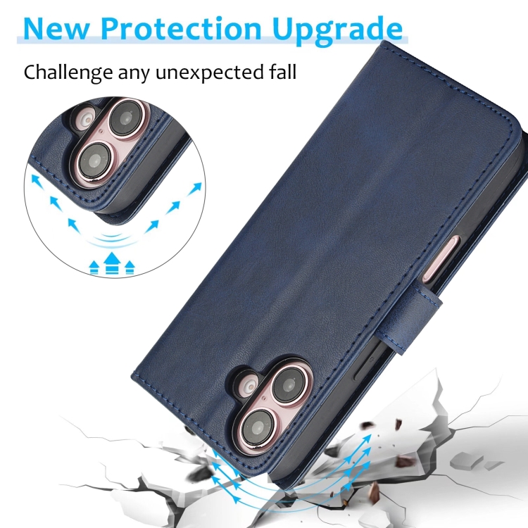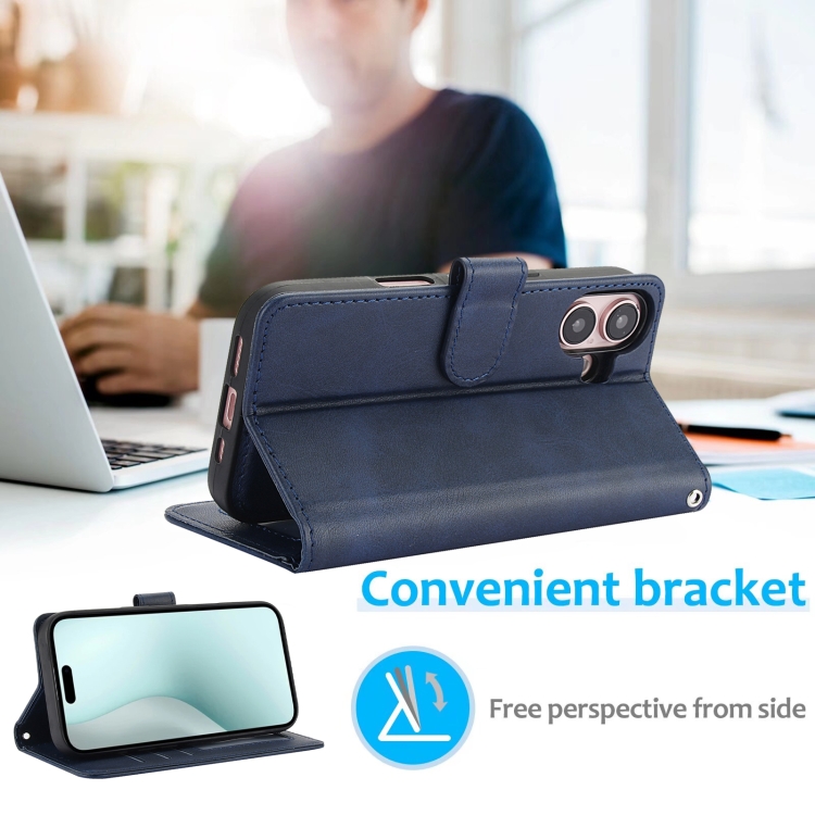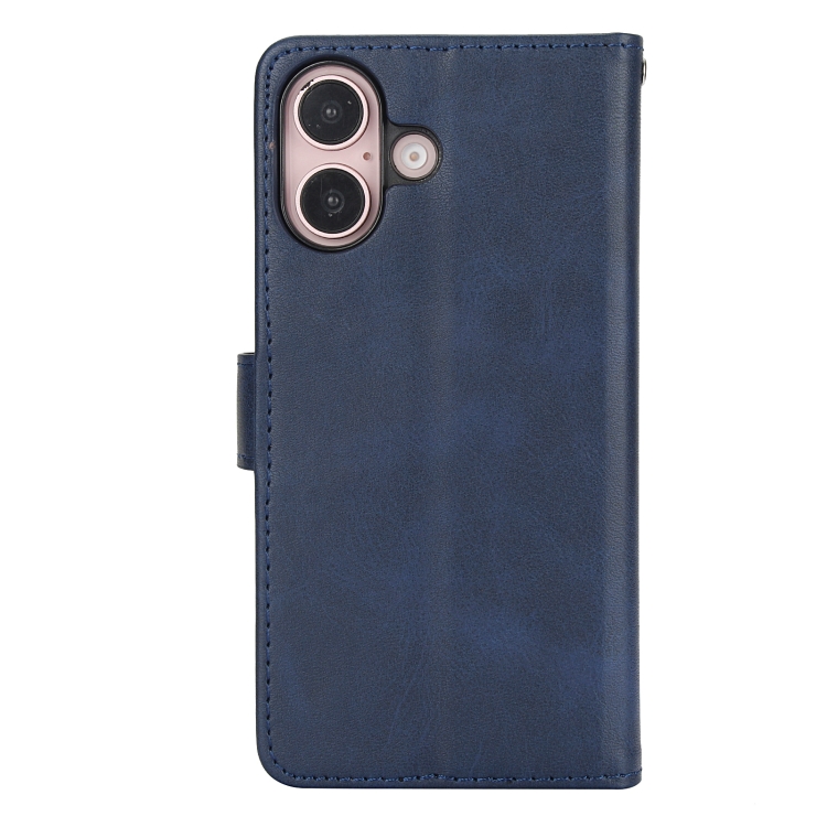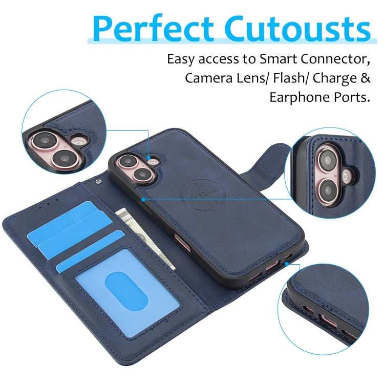 Funda de Cuero con Textura de Becerro 2 En 1 con Tapa Trasera Magnética Desmontable para iPhone 16 (Azul)