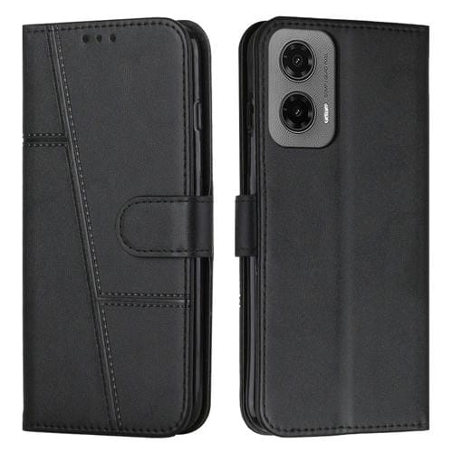 Funda de Cuero Textura de Becerro con Costuras para Motorola Moto G35 (Negro)