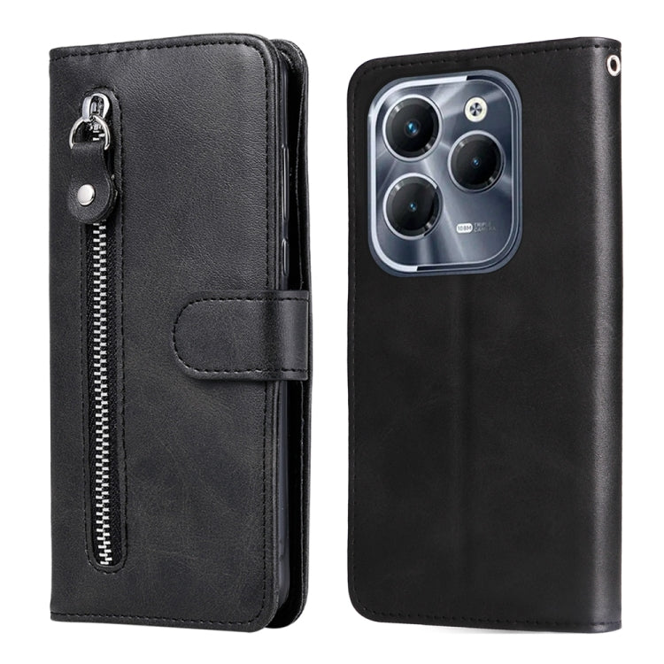 Funda de Cuero con Textura de Becerro y Cremallera para Teléfono Infinix Hot 40/Hot 40 Pro (Negro)