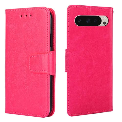 Funda de Cuero con Textura de Cristal para Google Pixel 9 (Rosa Rojo)