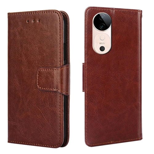 Funda de Cuero con Textura de Cristal para Teléfono Vivo S19 (Marrón)