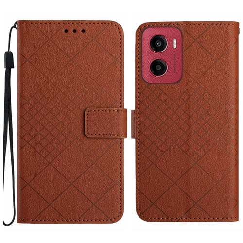 Funda de Cuero con Textura de Cuadrícula Rómbica para Motorola Moto G05 (Marrón)