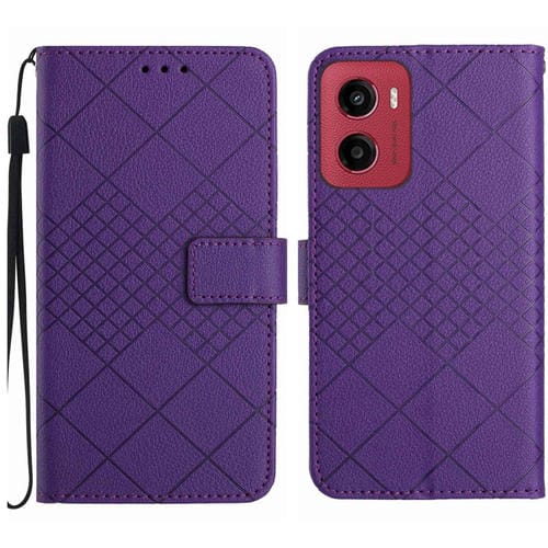 Funda de Cuero con Textura de Cuadrícula Rómbica para Motorola Moto G05 (Morado)