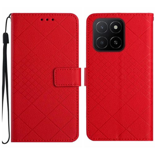 Funda de Cuero para Honor X5B 4G y X5B Plus 4G con Textura de Cuadrícula Rómbica (Rojo)