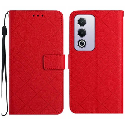 Funda de Cuero con Textura de Cuadrícula Rómbica para Teléfono Oppo A3 Pro 5G India/K12X 5G Global (Rojo)