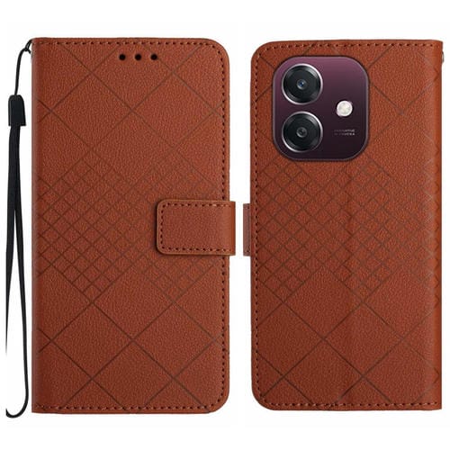 Funda de Cuero con Textura de Cuadrícula Rómbica para Teléfono Oppo A3X (Marrón)