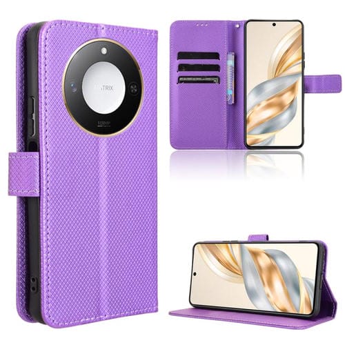 Funda de Cuero con Textura de Diamante Inteligente para Honor X60 5G/X9C (Morado)