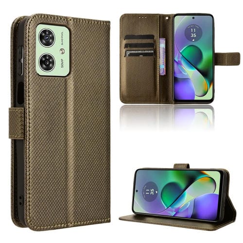 Funda de Cuero con Textura de Diamante para Motorola Moto G64 5G / G64Y 5G (Marrón)