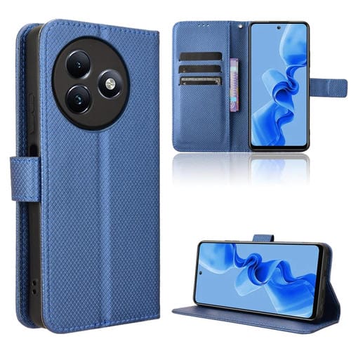 Funda de Cuero con Textura de Diamante para Teléfono Itel S24 4G (Azul)