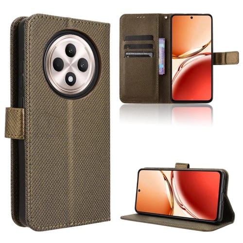 Funda de Cuero con Textura de Diamante para Oppo Reno12 F 5G (Marrón)
