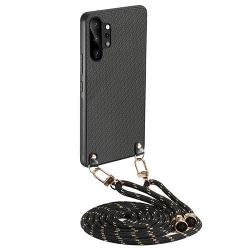 Funda Cuero Textura Fibra de Carbono Samsung Galaxy Note10 Correa Cruzada (Negro)