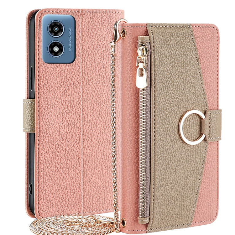 Funda de Cuero con Textura de Lichi Cruzada para Motorola Moto G 5G (2024) (Rosa)