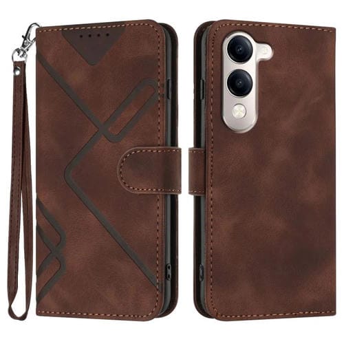 Funda de Cuero con Textura de Línea Global para Vivo Y29S 5G / Y04 4G (Café)