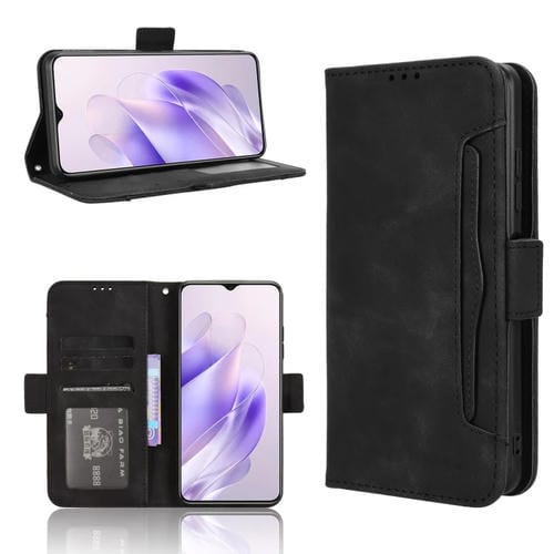 Funda de Cuero con Textura de Piel de Becerro y Ranuras para Tarjetas para Oukitel C37 (Negro)
