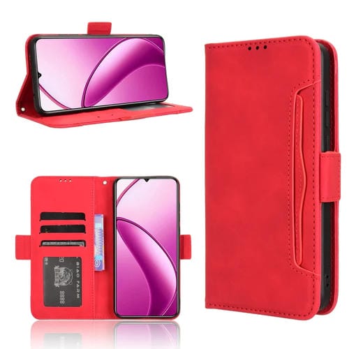 Funda de Cuero Textura Piel de Becerro con Ranuras para Tarjetas para Oukitel C53 (Rojo)