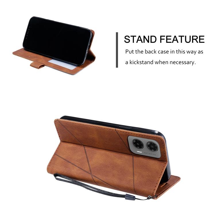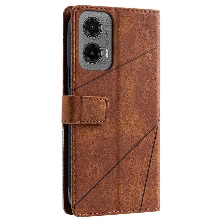 Funda de Cuero con Textura de Piel Sintética para Motorola Moto G35 (Marrón)