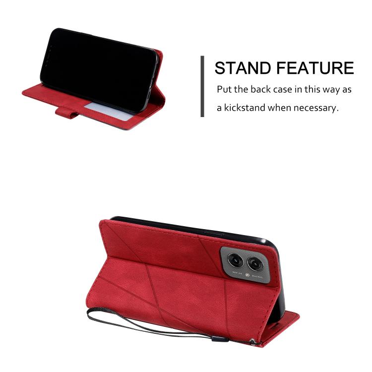 Funda de Cuero con Textura de Piel Sintética para Motorola Moto G55 (Roja)