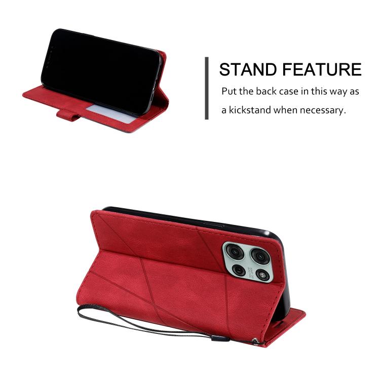 Funda de Cuero con Textura de Piel Sintética para Motorola Moto G75 5G (Roja)