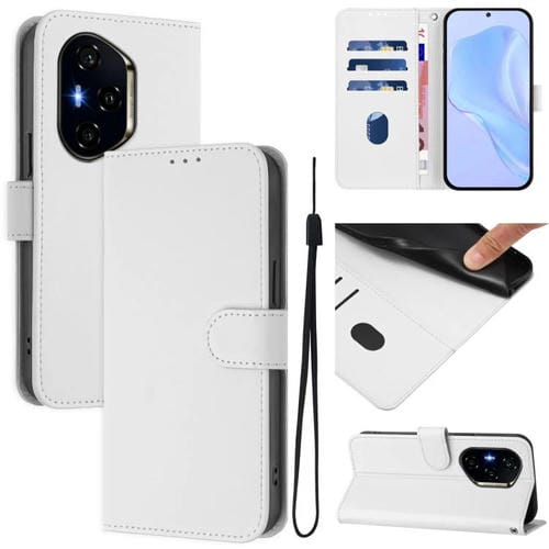 Funda de Cuero con Textura de Piel y Cordón para Honor 400 (Blanco)