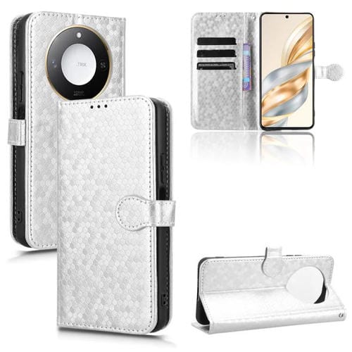 Funda de Cuero con Textura de Puntos Panal para Honor X9C Smart y X60 5G (Plateada)