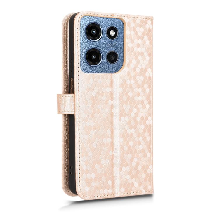 Funda de Cuero Motorola Moto G 5G 2025 con Textura de Puntos en Panal (Dorada)
