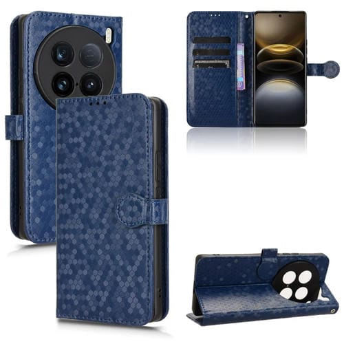 Funda de Cuero con Textura de Puntos En Forma de Panal para Vivo X100 Ultra (Azul)